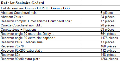 Nous proposons un lot de liquidation exceptionnel de receveurs de douche extra-plats GODARD, neufs, non utilisés, en emballage d’origine, disponibles immédiatement.